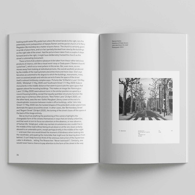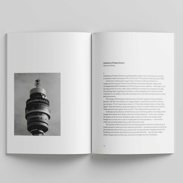 Published on the occasion of the exhibition Duncan Ganley: Inventory of Empty Streets at the Michael & Noémi Neidorff Art Gallery, Trinity University, San Antonio, USA, in 2022, this limited edition publication includes images from the Inventory of Empty Streets photographic project and essays by Duncan Ganley and Leo Costello.